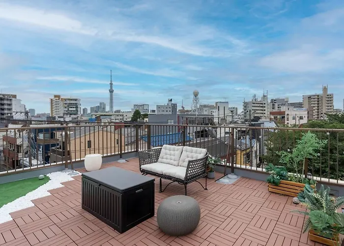 别墅位于隅田川区,墨田水族馆大概2.9公里,距离淺草花屋敷有3.6公里。 在露台上可以欣赏到城市美景。